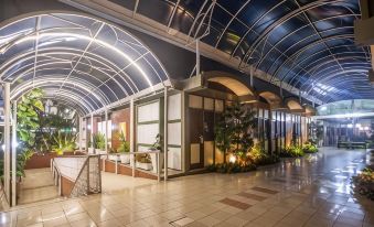 Beautiful setting, indoor gardens, restaurant, meeting rooms, swimming pool. Very friendly staff. Close to airport, bus station and grocery store.