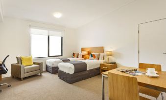 Great location, close to shops and train station. The staff is extremely friendly and welcoming. From the exceptional reception staff (we saw three different ladies each day and all of them were superb) to the housekeeping staff, they went above and beyond. Apartment included tea and coffee and all cooking utensils, the WiFi was decent, longer video calls could be challenging though. Would stay again. Thanks so much.