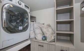 You will also find an all in one washer and dryer in the walk-in closet making long term stays very convenient. No need to move from the washer to the dryer, this one machine does both!