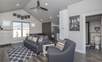 The Bird House is a studio style living arrangement, above a detached garage, that we designed with comfort and convenience in mind. You will find everything you need for a couple nights or several months in this completely private space. No shared walls, no shared living space, and tons of privacy on the back deck! As you arrive at our quiet, charming neighborhood you will find plenty of parking in front of our home. Checking in is as simple as entering a 4-digit code and walking in. Inside you will be greeted by beautiful new, modern finishes and you will immediately feel at home!