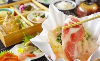 It's popular for its good quality hot spring and Shinshu Beef. There are Japanese-style room + twin attached with medical treatment open-air bath for 3~8 persons available.