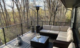 6. Outdoor Paradise: Step into the secluded backyard to find a relaxing hot tub, a swing for unwinding, and the soothing sounds of the creek. Nature lovers will appreciate the serenity of this natural setting.