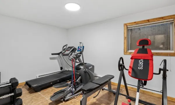 2. Abundant Space: With 4 bedrooms and 2.5 baths, this home provides ample room for family and guests. The lower level boasts a dedicated workout room equipped with barbells, a weight bench, treadmill, and an elliptical machine, ensuring you can stay active without leaving home.