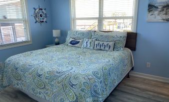 The heart of this home is its chef-inspired kitchen, perfect for preparing delicious meals and hosting memorable gatherings. The spacious granite-topped island not only provides extra prep space but also offers seating for guests to enjoy the chef's creations. The custom cabinetry, crafted from reclaimed yacht cradles, adds a distinctive nautical charm. With features like a pot filler above the cooktop for seafood feasts and a farmhouse sink for easy cleanup, this kitchen is as functional as it is beautiful. Fully stocked with all the essentials, you'll have everything you need to enjoy your stay.