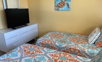 Each of the three bedrooms offers beautiful ocean views and peaceful privacy. The master suite boasts a king-size bed, private bath, and flat-screen TV. Bedroom #2 features a queen-size bed and a single bed, with its own flat-screen TV. Bedroom #3 is perfect for families or friends, offering three single beds and a flat-screen TV. The house accommodates up to eight guests in beds, with room for two more on the living room couches. All linens and towels are provided, along with a washer, dryer, and laundry essentials for your convenience.
