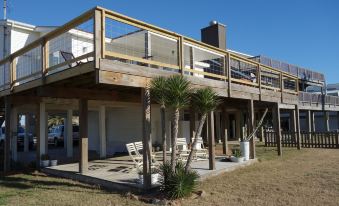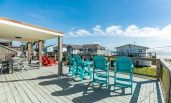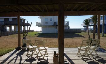 Seaside Serenity sleeps 8 guests - all of whom will have ample space with 4 queen sized mattresses. This relaxing home can easily accommodate large families or 4 couples vacationing together. Due to the abundance of natural light from the panoramic windows and high ceilings, the house has an expansive and airy feel. The ambiance of the home is sleek and clean with an open concept living area, dining area, and kitchen with bar seating. The deck off of the living room is expansive with beautiful views of the Gulf of Mexico, and a large covered area for outdoor dining and relaxation. In addition, there is a covered entertaining space with a finished deck on the lower level with great views of the beach. The yard off of the deck is over-sized and perfect for outdoor games and activities. There are kayaks and beach toys in the garage for you to enjoy. The living area features a flat screen TV for your viewing pleasure, along with a new queen-sized sleeper sofa and two new (April '23) swivel glider chairs, and the home is wifi friendly. The kitchen features ample counter space, cooking utensils, dishes, and flatware along with Keurig and regular coffee machines. This includes a brand new (May 23) 5-burner range with a large oven. The master bedroom has a queen bed with nearby bathroom. The second bedroom has 2 queen sized beds and an ensuite bathroom. Coffee pods and sweetener are provided for you, along with dog bowls (small & large), and a crate for your furry friend's comfort if you choose to bring him/her! This is a great place to relax on the deck, play on the beach, or make the short trip to see all that downtown Galveston has to offer!About pets:Pets allowed: dogs (limit 2 total).About checkOut:Check out before 10:00 AM.About children:Children allowed: ages 0-17.About checkIn:Check in after 4:00 PM.About smoking:Smoking is not permitted.About minBookingAge:Minimum age to rent: 21.About events:No events allowed.
