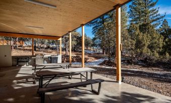 A beautiful spaceous brand new cabin/ lodge located just above Panguitch Lake in the pines. ADA accesible and with all the comforts of home. 6 bedrooms and 5 bathrooms Great wifi. Sleeps 18 in beds. Table space for 26 inside dining and a fully covered front porch. With BBQ grills and stoves available and 2 large refrigerators hosting a large group is what its for. On site laundry room. There is great fishing year round with great year round road access. Its the gateway to so many places, Brianhead ski resort, Cedar Breaks, Bryce Canyon, Zions and the Grand Canyon. The cabin is in the middle of everything. With hundreds of miles of accessible dirt roads to see wildlife right from the cabin. Deer will be looking at you through the windows. You wont be dissapointed with your stay at Elk Lodge at Panguitch Lake...About pets:No pets allowed.About checkOut:Check out before 11:00 AM.About children:Children allowed: ages 0-17.About checkIn:Check in after 4:00 PM.About smoking:Smoking allowed: in designated areas.About minBookingAge:Minimum age to rent: 21.About events:Events allowed: family gatherings, birthday parties, weddings.Maximum event attendees: 50.