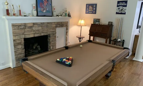 PRIVATE LAKE HORSES Egg Collecting FIRE PIT. You won’t find a property with so much to offer just 15 miles from Downtown Dallas, Rockwall, Sunnyvale and Rowlett. Your private home sits on a secluded acre that includes FIVE bedrooms to sleep 12 large family room with kitchen & bar game room with pool table 3 bathrooms also 6.3 acres with stocked pond and horses. Sit next to FIRE PIT or relax in HOT TUB. Collect eggs cast a line off the FISHING DOCK or paddle out in CANOE, PADDLE BOAT, AND KAYAKS.About pets:Pets allowed: dogs and cats less than 50 lbs per pet (limit 2 pets total).About checkOut:Check out before 11:00 AM.About children:Children allowed: ages 0-17.About customRules:ABSOLUTELY NO DISCHARGING OF A FIREARM ALLOWED ON PROPERTY!.About checkIn:Check in after 4:00 PM.About smoking:Smoking is not permitted.About minBookingAge:Minimum age to rent: 25.About events:No events allowed.