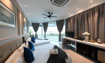 Great location with walkable distance to Clans Jetty, and also there are a number of food places around. Walkable distance to Komtar at about 15 mins. We have got a room with partial sea views. The room is decent, enough for 2 adults and 2 kids. There is no lift in the property. The check-in counter is at the shophouses opposite, about 1 min away.