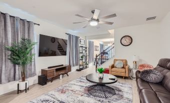 Experience a contemporary floor plan adorned with brand-new furnishings, two spacious living areas featuring smart TVs, and a fully equipped kitchen (Includes reverse osmosis for your purified drinking water). The property features a master bedroom located at the first floor with walk-in shower and separate bathtub for relaxing, a private room upstairs with an ensuite bathroom and closet, three private rooms upstairs with shared bathroom. Additionally first floor features an in house threadmill, dumbbells and workbench for your workout.