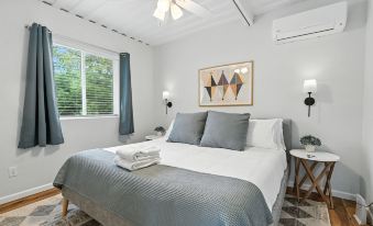 Bedroom 1: King size bed, ceiling fan