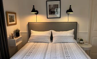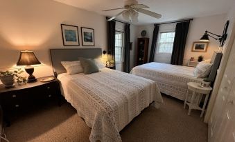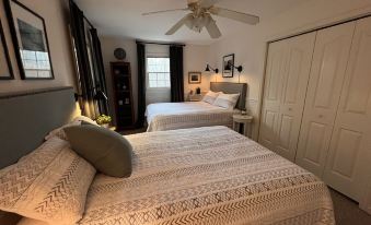 Two bedrooms sleep 6 people. The primary bedroom has a king and on-suite 3 piece bathroom with laundry. No sclepping laundry to the basement! The second bedroom features 2 queens. Each person has their own reading light and side table.