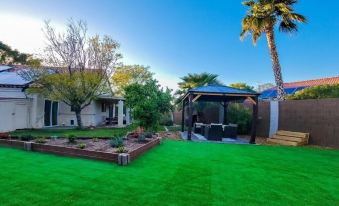Large House, simple check in process. The back yard was big. Pet friendly so that was my main reason for choosing this place. It had a doggy door allowing Remi in and out during the very hot days. It was decorated cute and the mattresses were all soft memory foam.