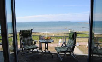 Die Ferienwohnung befindet sich in einem Haus an der Promenade mit direktem Strandzugang. Die Aussicht auf Kap Arkona und den Hafen ist einmalig. Die Ausstattung ist super und insgesamt kann man es sich wunderbar gemütlich machen.