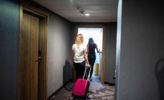 A modest 3-star hotel that pleasantly surprised us. Even though the hotel is located at a crossroads and a large discount store, the room was quiet. Nice room with decor for children (pillows and paintings with fairy-tale characters), tasty breakfast and helpfull, friendly staff.