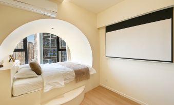 房間很乾凈,也超級漂亮,那個投影特別清晰支持4K很值得來,冰箱裏麪的礦泉水是免費的