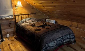 Rustic Cabin is a quaint Amish style build. It sits in a peaceful valley surrounded by treed bluffs and a creek. A vaulted roof with a lofted sleeping area. There are steep stairs to the loft area where you will find a queen and two twin beds. The quaint studio main floor is perfect to relax in. You will have a full kitchen supplied with pots & pans, soap, and a few basic essentials including a coffee maker and coffee. There is TV, internet, and you can relax on the lawn listening to the creek flow. Complete with heating and air conditioning for all weather needs. Discover the charm of Boscobel.