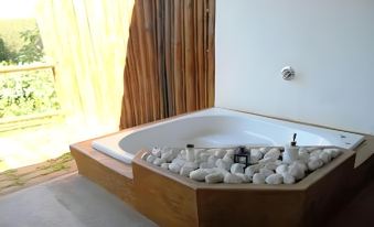 Location very hidden. Signage very poor. The person who received us, Mpho rendered amazing service thank you. The room was beautiful. But not privacy on the shower. The jacquizzi wasn't working we had to move all our stuff to the next room. But this was well facilitated by Mpho.