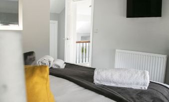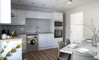 A spacious and stylish 2 bedroom, 2 bathroom duplex apartment located in the centre of Grassington. This stunning property has undergone a full refurbishment programme (2022) and offers superb accommodation in this stunning Yorkshire Dales village. Home to the fictional market town of Darrowby in James Herriott’s ‘All Creatures Great and Small’, this picturesque village has everything required for a relaxing break. A cobbled market square, fringed by independent, artisan shops and art galleries, friendly cafés and fabulous pubs, all set against the dramatic back drop of the Dales. There is something for everyone: incredible walks and scenery, superb restaurants, visitor attractions such as Stump Cross Caverns. Or for the kids: Billy Bob’s Parlour and Hesketh Farm, to name just a few. The bustling market town of Skipton is approximately 15 minutes' drive away. This superb apartment is located in the central market square, right next door to the Vet’s practice in the TV series. It is spread over the first and second floors. From the ground floor, take the steps to the first floor: Spacious kitchen / diner featuring electric hob and full sized oven, washing machine, fridge with ice box (no freezer), dishwasher. Dining table to seat 4-6 people. Spacious living room with plenty of seating and views over the square, Smart TV, bathroom with bath and shower over, WC and sink. Second floor has 2 good sized bedrooms: master bedroom with super king bed and en-suite shower room, second bedroom with king bed. All bedding and towels provided, and hairdryer. Free WIFI throughout. There is a good sized local car park just a few minutes’ walk, sometimes you can get a spot in the market place.About pets:Pets allowed: limit 2 total.About checkOut:Check out before 11:00 AM.About children:Children allowed: ages 0-17.About checkIn:Check in after 4:00 PM.About smoking:Smoking is not permitted.About minBookingAge:Minimum age to rent: 18.About events:No events allowed.