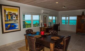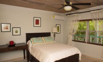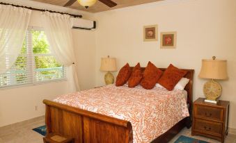 2 large bedrooms with King and Queen beds & en-suite bathrooms. The furniture is Indonesian antiques acquired during our time in the Far East. Top quality accommodation on par with the villa next door. Please see the photographs which give a flavor of the property. We are located on a rocky elevated peninsula. The elevation provides the stunning views and refreshing breezes. Access to the beautiful Hooper's Bay Beach is a gentle 5 minute stroll.
