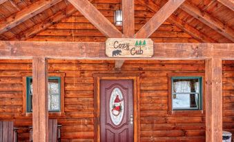 Cozy Cub lives up to its name. Cozy and small it still has all the amenities you are needing. Full size kitchen where you can cook your own meals so you never have to leave. The bedroom area offers a beautiful, real log, queen size bed. The real wood fireplace is a real hot spot. A hot tub, gas grill, and seating area are arranged on the spacious back deck. The outdoor firepit area is perfect for relaxing under the stars.About pets:No pets allowed.About checkOut:Check out before 11:00 AM.About children:Children allowed: ages 0-17.About checkIn:Check in after 3:00 PM.About smoking:Smoking is not permitted.About minBookingAge:Minimum age to rent: 21.About events:No events allowed.