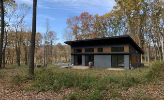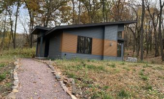 JANUARY SPECIAL-15% OFF. Peaceful setting for this 2 bedroom contemporary retreat with a soaring ceiling and lots of glass to take in the natural surroundings. Modern kitchen with Cherry cabinets, stainless steel appliances and quartz counter tops. Other features include a cozy fireplace, 2 patios, air conditioning, murphy bed for extra guests, gas grill and a fire pit area for camp fires. Quiet road but very close to Devils Lake, Devils Head, Lake Wisconsin and in between Baraboo and Sauk City. Great escape to read and relax or take in the trails at Devils Lake or Parfreys Glen. Excellent restaurants are within 5-15 minutes from the property. A truly unique experience in a great location! PLEASE NOTE Wi-Fi is dish, good but limited. June 12th-August 31st 7 day minimum stay.About pets:No pets allowed.About checkOut:Check out before 11:00 AM.About children:Children allowed: ages 0-17.About checkIn:Check in after 4:00 PM.About smoking:Smoking is not permitted.About minBookingAge:Minimum age to rent: 21.About events:No events allowed.