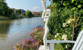In addition, our guests enjoy again and again the community garden and its terraces, where you can enjoy the view and the atmosphere directly on the water up close. Also there you will be barrier-free.