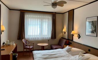 Rather dated hotel. Poor breakfast (no cooked items, except some eggs), no sausages (this is Germany mind you). Restaurant closed, we knew this beforehand but still... Pretty expensive for what they have to offer.