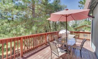 Located in a quiet community among the pines, this house has a warm, rustic interior that will make you feel relaxed right away. The main living area features comfortable furniture where you can sit and escape into a great novel. On lazy nights, turn on the flat-screen TV and enjoy a DVD with your loved ones.