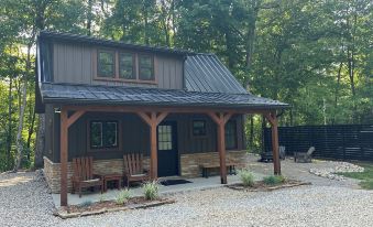 The Pine Ridge Cabin House is nestled on the edge of the woods at Old World Garden Farms and offers a great space to get away and enjoy nature. Conveniently located just 2 miles off of I-70, the house features a cozy living room with a large smart tv (free Samsung tv shows/movies and you can log into your Netflix/Youtube/etc. accounts with the provided wifi), fully equipped kitchen with electric stove, microwave and full size refrigerator and a full bathroom with a walk in shower and a large loft bedroom. There is a spacious covered back porch with a gas grill, outdoor seating and dining table and fire pit area, all with views of the wooded ridge below. The extended property includes hiking trails, pavilion and pond that are open to guests to explore. Guests have full access to the Pine Ridge Cabin and can take advantage of the connected hiking trail that starts at the end of the shared driveway. It is an easy/moderate hike, but does have hills/elevations and will require some exertion. Once you exit from the woods you will enter into a large grass meadow. You can turn and go back to the Pine Ridge Cabin via the trails or head up to the gathering barn where you can enjoy the company of other guests and/or the owners. You can also walk back to the cabin via Pisgah Road via the hosts driveway. There is another hiking trail that is located near the pond/pavilion area on the other side of the owners property that you are free to use. There are also several state parks within easy driving distance where you can enjoy lakes, hiking trails and more.