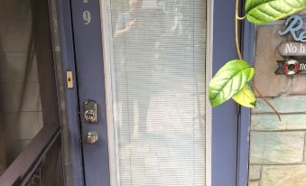 Flight of stairs to a clean and spacious place to stay. The shared patio is very artsy. We came during Christmas. Would love to see the patio with all plants in bloom during summer.