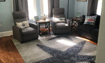 Air conditioning & heat. Hardwood & tile floors with area rugs. Dining room seats 3. Flat screen, smart TV in the living room with Netflix. Wifi available. Second floor; 1 flight up.