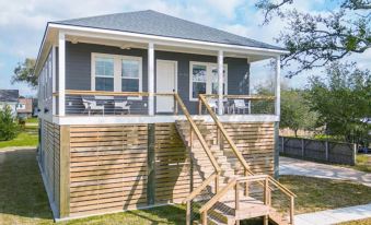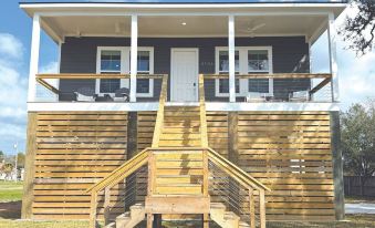 Enjoy the beautiful views and the soft breezes on the front porch of this newly built home. This superbly decorated home with modern touches has 3 bedrooms 2 baths 5 beds just a short walk to white sandy beaches. The downstairs area offers the perfect setup for outdoor family gatherings with kitchen, grill and TV. Location is fantastic, short distance to casino, Jones Park, the Aquarium, great restaurants, and Fishbone Alley. Or, just walk to the beaches to enjoy the sunsets or fish on the pier.About pets:No pets allowed.About checkOut:Check out before 10:00 AM.About children:Children allowed: ages 0-17.About checkIn:Check in after 4:00 PM.About smoking:Smoking is not permitted.About minBookingAge:Minimum age to rent: 19.About events:No events allowed.