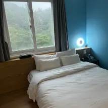 침구류 청결하게 세탁되어 있어 좋았어요. 보문단지 내에 있어 위치도 좋고 앞쪽이 산이라 초록초록하네요.