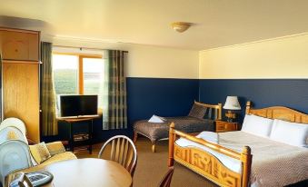 Alloggia in una delle 4 camere della struttura! Nella tua sistemazione, completa di angolo cottura con frigorifero e forno, ti sentirai come a casa. Riposati su un comodo letto con materasso memory foam e biancheria da letto di alta qualità. La TV a schermo piatto da 32 pollici con canali in digitale è l'ideale per concedersi un po' di svago, mentre il Wi-Fi gratuito ti permette di restare in contatto con il mondo. I comfort includono scrivanie, microonde e un ferro/asse da stiro su richiesta.