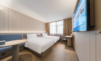The hotel is the Hanting 3.51 new version, located on the bustling Lantian Road, adjacent to Guoxing Avenue, 712 meters on foot from Riyue Plaza Duty-Free Store, and 576 meters on foot from Haikou Provincial Government; 4 kilometers by car from Hainan Provincial Museum, and 3.6 kilometers by car from Qilou Old Street. We always strive to create a friendly and convenient, high-quality yet affordable travel experience for our guests, offering free parking for in-house guests, self-service laundry, a clean and reliable staying experience, breakfast with a modern Chinese street-food vibe, local delicacies with the flavors of each city, preserving the warmth of tastes in memory. Hanting Hotel leads the upgrade of happiness in the national travel experience and is a close relative and neighbor to 1.4 billion people. Everyday life, crafted with beauty!