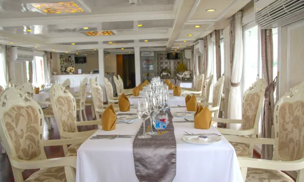 Questa nave riparte dal porto di Ha Long almeno una volta durante il viaggio.