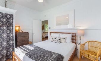 Cute cottage a block from the Pine Trees section of Hanalei bay. Easy walk into town where you’ll find a couple grocery stores, restaurants, coffee shops and shave ice. The home is fully equipped with what you need for cooking, heading out to the beach, and laundry. Beds were comfortable and rooms kept cool with individual AC units in the living room, kitchen and one of the two bedrooms, however with a fan, the other bedroom was kept cool. Daniel was responsive to any questions we had. We thoroughly enjoyed our stay.
