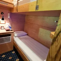 Super Clean. Smells fresh. Blankets and toothbrush provided. Easy to locate. Toilet nearby. Got air con. Double bed bunk style.
