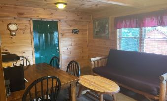 3BR, 1 Bath Cabin with hot tub, full kitchen, and living room.