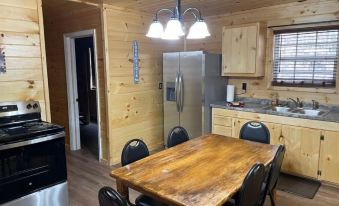 2BR 1 Bath cabin w/ full kitchen, hot tub, and living room.