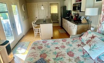 Studio cottage, newly renovated with granite countertops, granite shower enclosure, beautiful wood floors overlooking the ocean. Wake up to the fishing boats, lobster and scallop boats leaving the shore. Relax and unwind. Top of the line sleeper sofa with mattress cooling toppers. Outdoor patio seating and grill, hammock and granite fire pit. About pets:Pets allowed: limit 2 total.About checkOut:Check out before 10:00 AM.About children:Adults only.About checkIn:Check in after 4:00 PM.About smoking:Smoking is not permitted.About minBookingAge:Minimum age to rent: 18.About events:No events allowed.