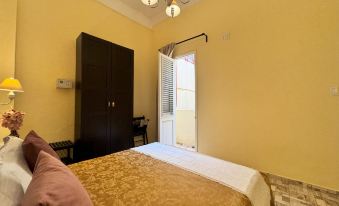 Successivamente troverai la camera Deluxe, spaziosa con un letto matrimoniale extra large e un comodo materasso. L'armadio per accogliere le tue cose e i mobili a tuo uso. Disponiamo di un letto personale che può essere aggiunto su richiesta. Un piccolo balcone che si apre su uno sfogo interno dell'edificio.