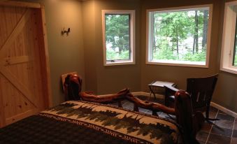 The property is wooded and there was a bird feeder flush with chickadees, also a hummingbird feeder that was pretty to see. Because of the rainy weather we were not able to access the property features we were looking forward to, walks around the lake, kayaking and swimming but all the equipment was available.