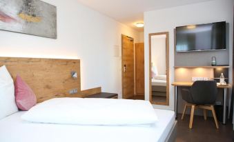 Das Hotel ist in einem kleinen Ort. Es ist eigentlich für den Ort recht groß und anscheinend erst kürzlich innen komplett renoviert. Somit wirkt alles frisch und sauber. Es ist zweckmäßig modern eingerichtet im eher rustikalen Stil. Herausheben möchte ich die Flexibilität der Betreiber und auch die Freundlichkeit. Ich habe mich sehr wohl gefühlt. Auch das Frühstück war sehr gut und von großer Vielfalt. Also für mich eine klare Empfehlung.