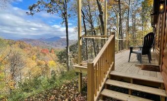 Tucked away at the end of a road in the mountains of Waynesville, our cabin’s stunning exterior will be noticed at first glance. Starting at our wrap-around deck to take in the awe-inspiring views, our cabin will check all your boxes.