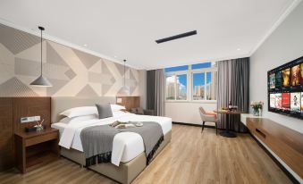酒店位於高鐵站片區,步行5-7分鐘有超市和餐店,酒店工作人員熱情,房間設施有點陳舊,但性能完好,寬敞舒適,早餐可口,性價比高。