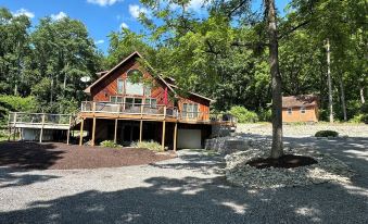 Our home features 4 bedrooms and 3 full bathrooms (one bathroom includes a tub while the other two have showers). A spacious living room with flat screen TV, and vaulted ceiling with a wall of windows. The downstairs has the third bedroom plus separate space with 2 boat beds and a pull out couch that can sleep 2 more. The room features a flat screen tv and adjoined is a 300 sqft arcade which is fun for all ages! Our large eat-in kitchen with dining area for at least 8 and the large central island make it the perfect gathering spot as the heart of the home. You will enjoy meals here whether that means cooking with all the pots/pans or whether that means take-out as there's plenty of space for both! The fridge and dishwasher can make stowing away leftovers and dirty dishes a breeze. Our spacious deck with outdoor sectional and chaise lounge chairs has to be a highlight of the home too - perfect for lounging with a good book, a drink/snack or just watching the sunset over seasonal lake views while listening to nature. We have a non-heated “plunge pool” with its own deck, sun umbrella and deck chairs. The third "dining" deck with gas grill also lets you enjoy the outdoors with a separate outdoor dining table (with seating for 8). Each bath is located on separate floors allowing for privacy while still being together. You and your guests will have ample space to park your cars/trucks/boats, etc! (For those interested, nearby Smith Park has a boat launch area for a nominal daily fee.) We recently installed a hot tub for guest use all year round!