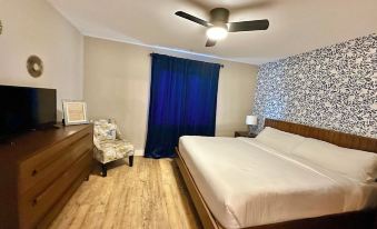 We hope you'll feel pampered and comfortable in each bedroom. All our beds and pillows have mattress/pillow covers for hygiene and peace of mind. With clean linens and fluffy pillows, you'll find a king bed in the main floor bedroom and a queen bed in the lower level bedroom (for a total of 4 guests) - with the main floor bedroom having its own flat screen tv. All the bedrooms have blinds and/or curtains that block out the majority of sunlight that comes through the windows. The house can accommodate an additional 2 guests with the use of a queen sleeper sofa. We have enough linens and pillows for those too! It is located in the game room so there is nobody sharing a bedroom. Recently, we added a sliding barn boor so that this lower level sofabed area has some added privacy.