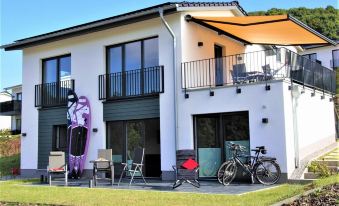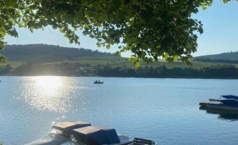 The beautiful new holiday home directly in the first row of the lake in Diemelsee-Heringhausen has 3 bedrooms, a kitchen with dishwasher, refrigerator, oven, coffee machine etc., two flat screen TVs (57 inch), dining and living room, wellness bathroom with shower, bathtub and sauna as well as a 2nd bathroom with shower. In the holiday home with free private parking, lockable room with loading possibility for bicycles, skis, boats, fishing, both relaxation seekers and active holidaymakers will find the right accommodation and that in all seasons. From spring to winter, the Diemelsee lures you to fish, swim and canoe, as do the hiking, cycling and mountain bike trails. Willingen and Winterberg are not far away, so that the attractions there, such as the summer toboggan run, cart and bowling centre, Ettelsbergbahn and the varied gastronomy, can be reached quickly. In winter, the snow adds to the fun and for downhill skiers, the ski areas of Willingen and Winterberg attract, so the holiday home is also an ideal base for skiing enthusiasts.
